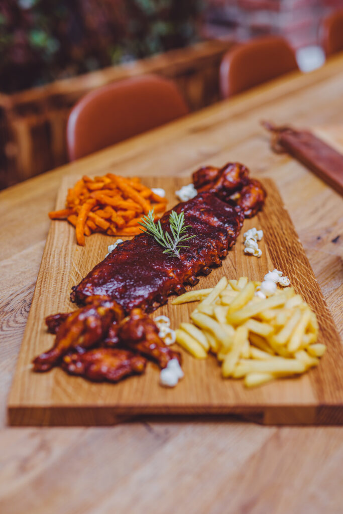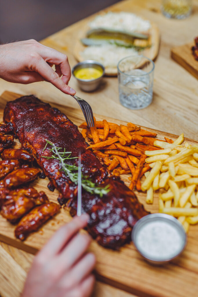 Naszą największą specjalnością, a zarazem dumą są aromatyczne wieprzowe żeberka BBQ, gdzie mięso dosłownie spada z kości! Serwujemy również soczyste skrzydełka z kurczaka, podawane w naszych autorskich sosach jak również kultowe amerykańskie skrzydełka buffalo. Przenieś się też na chwilę na dziki zachód i spróbuj naszych oryginalnych, lekko pikantnych Frytek Southwest serwowanych z szarpaną wieprzowiną, które są Waszą ulubioną formą dania z frytek.